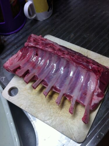 仔羊の肋骨付近です。minemaz氏にもらいました。 ちょっと前に送ってもらって、それがなんか激臭でやばかったのでショップ氏にあれしたところ、新しいのをよこすということで今日でした。これは激臭なかったので、あれやっぱ腐ってましたね。食っちまったよ…