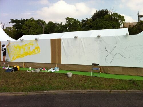 夏のいろいろということで。 サマソニ大阪でモリモリしたときのやつです。ブツは撤収ののち、はまぐちさくらこの人の家にあるらしいです。色々あって背景と修正に白黒ペンキを拝借した以外はプロッキーでゴリゴリ描きました。慣れない画材はぶっつけで使うと…
